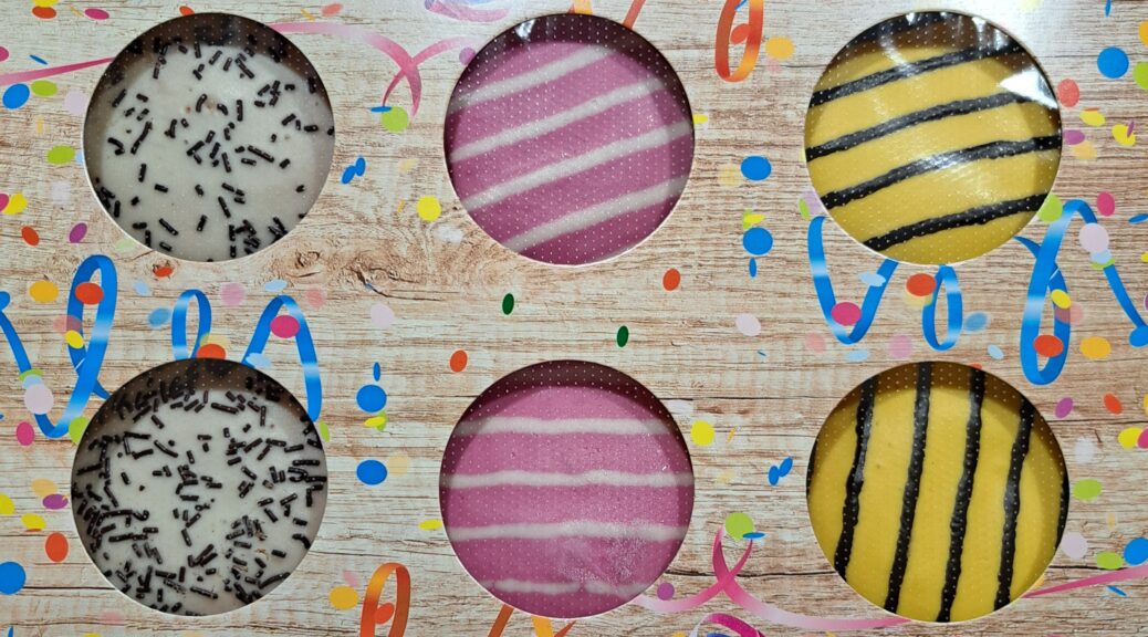 Bunte Schachtel mit 6 bunten Pfannkuchen