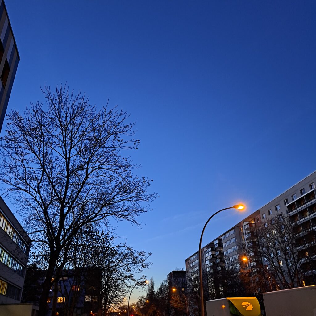 Dann ist plötzlich Feierabend. Im Dunkeln gehe ich noch eine Runde raus. Das tut so gut, ohne Husten! Abends kein postcrossing mehr, stattdessen Lesen und Musikhören a lá Buddenbohm.